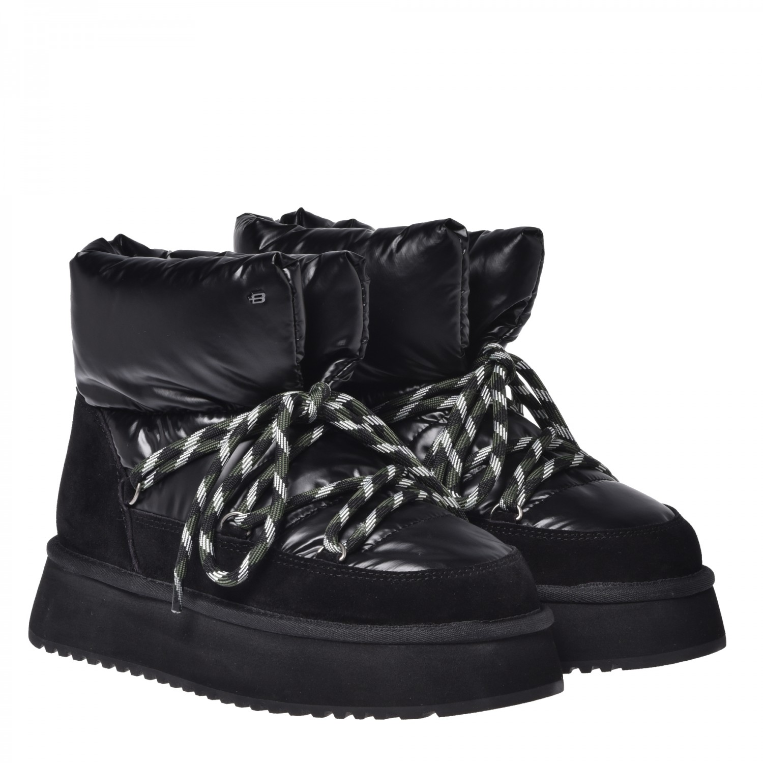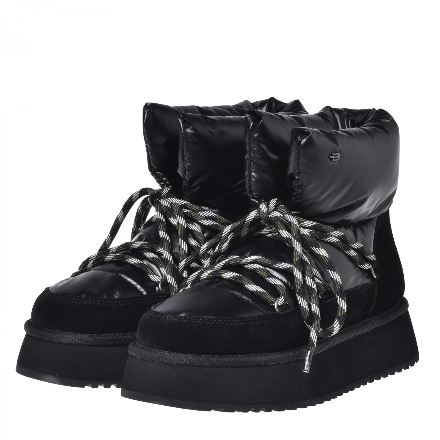Śniegowce od firmy Baldinini na platformie to must-have dla miłośniczek mody, które cenią sobie ciepło. Te uniwersalne czarne botki sprawdzą się zarówno w casualowym zestawieniu z jeansami i puchową kurtką na codzienne spacery, jak i w połączeniu z zimowym płaszczem. Wysokosć platformy posiada 3 cm.