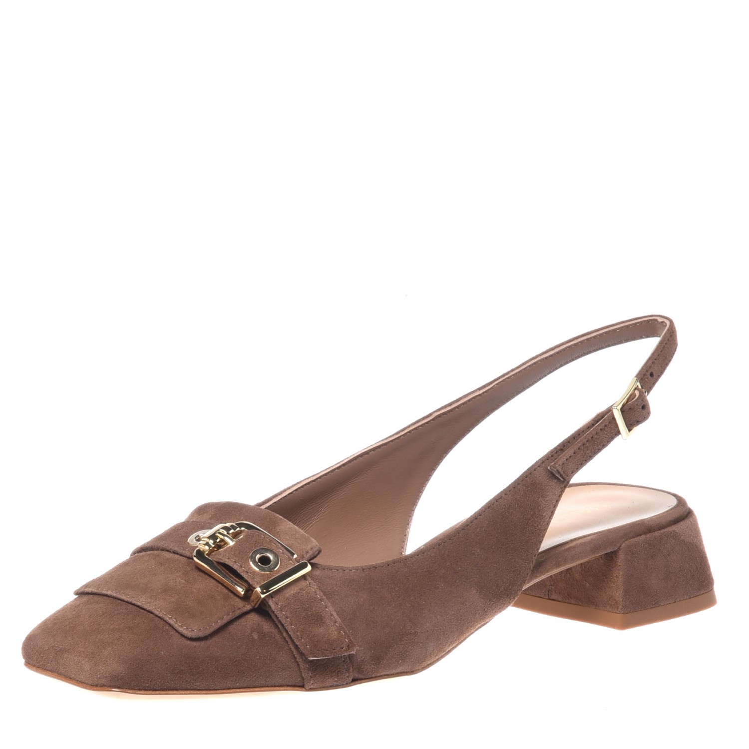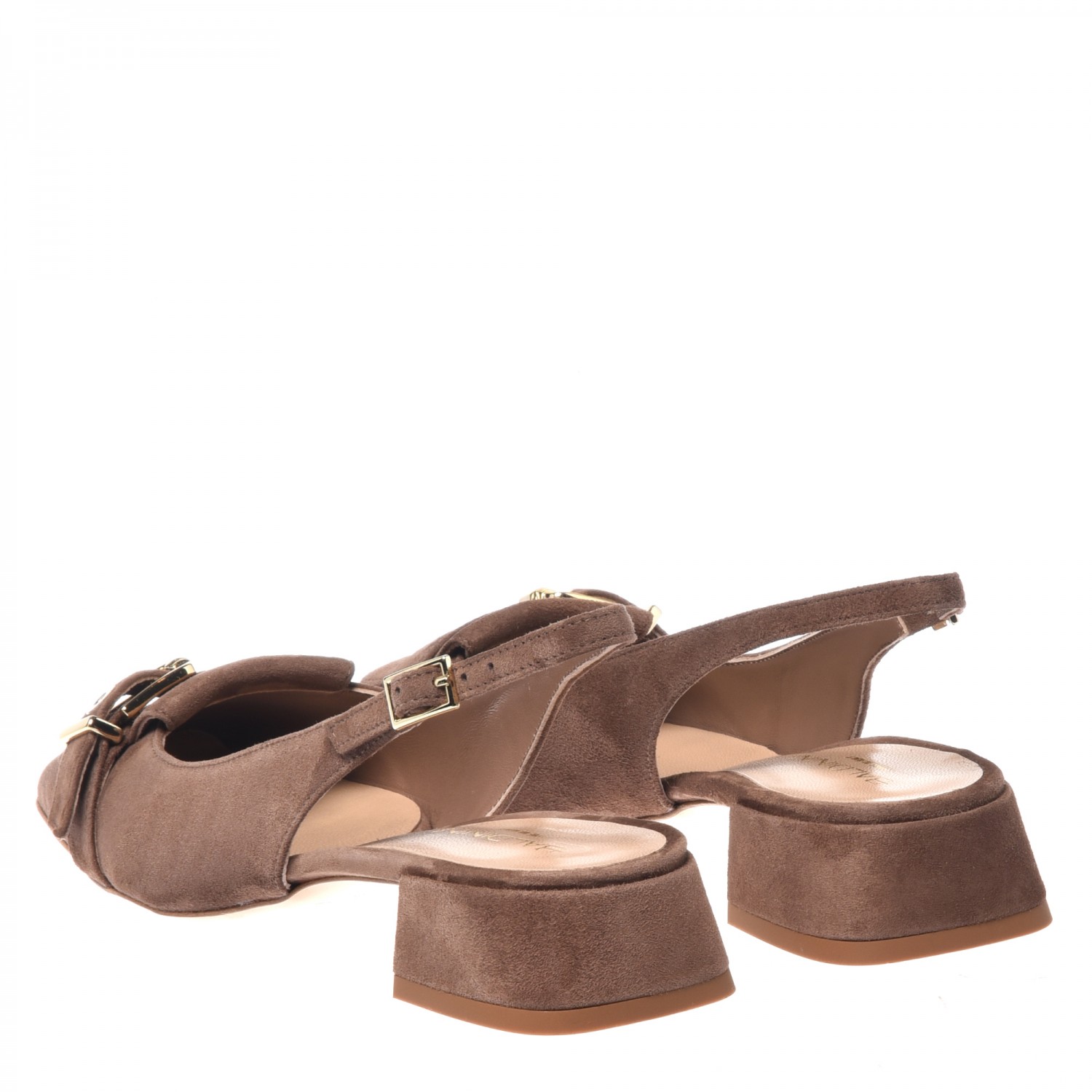 Nowość w propozycjach marki Baldinini. Staranność wykonania oraz dbałość o każdy szczegół sprawiają, że te beżowe czółenka gwarantują najwyższy komfort użytkowania. Doskonale prezentują się na nodze i pasują do wielu stylizacji. Wykonane ze skóry zamszowej, mają elegancki fason z otwartą piętą, a ich wkładka wykonana jest ze skóry.