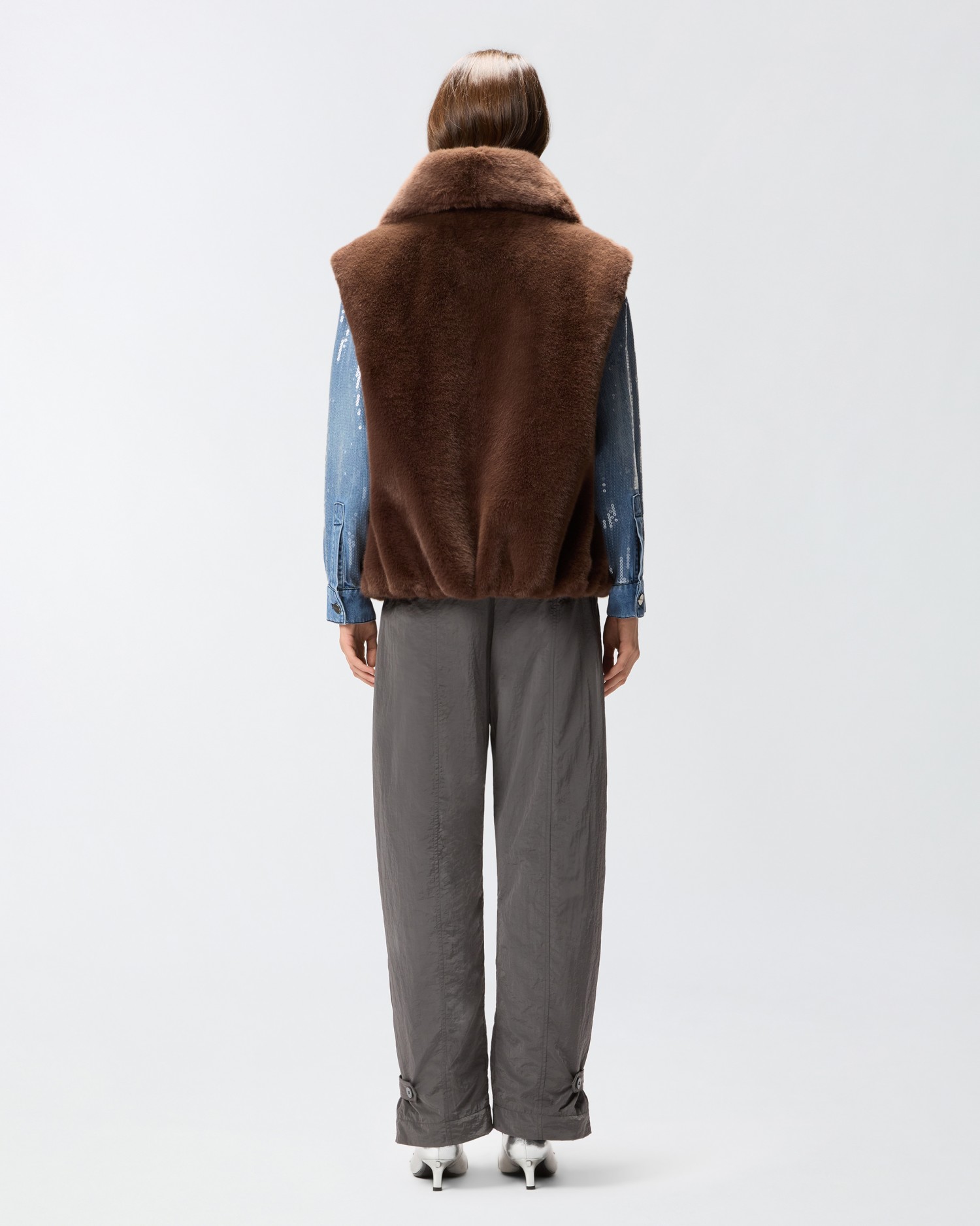 Bezrękawnik z golfem wykonany z futrzanego materiału Aspen, z zapięciem na zamek z przodu na całej długości oraz praktycznymi kieszeniami bocznymi. Staw czoła chłodom w pełnym stylu PINKO i wprowadź ten urzekający model do zimowej garderoby. Bezrękawnik jest szczególnie uniwersalny, łatwo łączy się z wyrafinowaną spódnicą lub jeansami na bardziej nieformalne okazje.