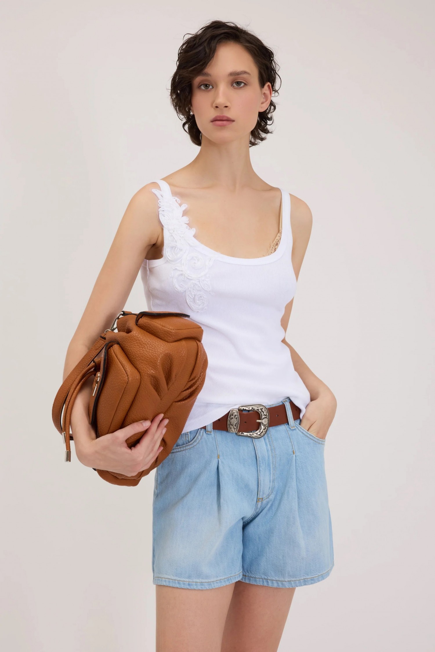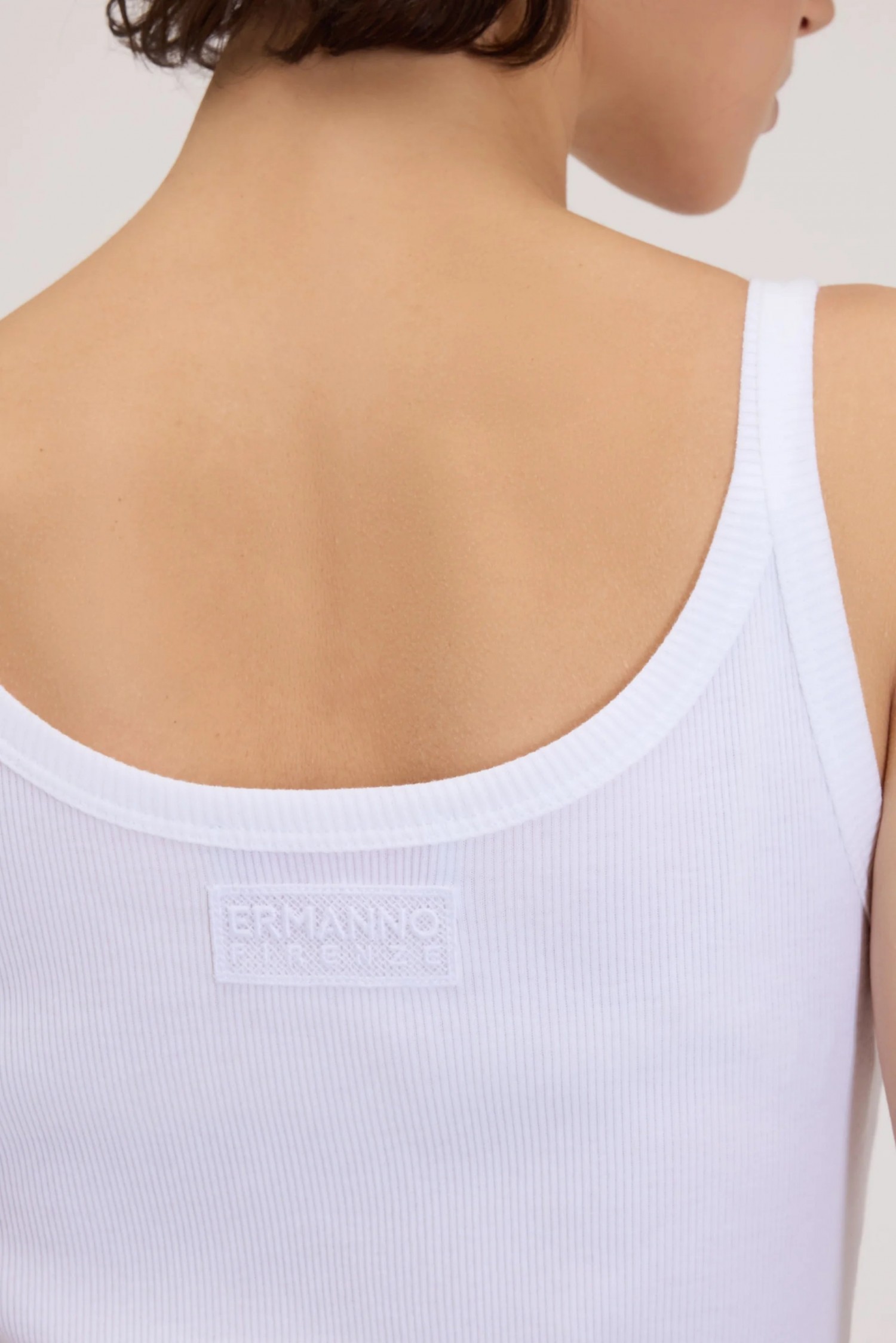 Prążkowany top z dzianiny jersey z szerokim, okrągłym dekoltem i haftem z organzy z boku. Haftowane logo z tyłu. Dopasowany krój.